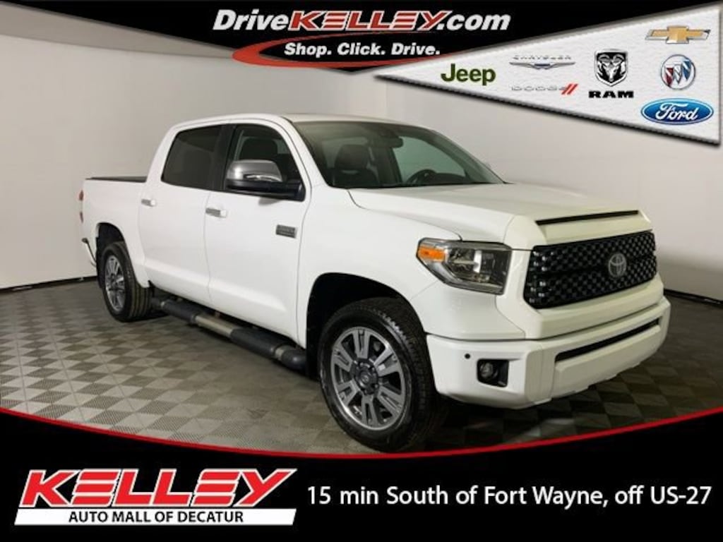 CARFAX One-Owner. 2020 Toyota Tundra Platinum 5.7L V8 Backup Camera, Bluetooth, Lane Change Alert, Leather Seats, Leather Wrap Steering Wheel, Navigation System, Tow Package, Heated Front Seats, Ventilated Front Seats, Split folding rear seat. i-Force 5.7L V8 DOHC 32V LEV Super White 13/17 City/Highway MPGWhere else can you shop 6 brands in one location? We offer new Ford, New Chrysler, Dodge, Jeep and Ram, and New Chevrolet. In addition to a great selection of used pre-owned inventory. Used vehicles as low as $2,999.Why Choose Us? You will receive FREE UNLIMITED CAR WASHES, good at ALL State of the Art Kelley Car Wash Locations, for as long as you own your vehicle! (**2 washes per week equates to an $832.00 value per year!**) Free Car Wash Locations include the 14/69 Auto Mall, Kelley Chevrolet, and Tom Kelley Chevrolet Buick Ford! (Just south of Fort Wayne in Decatur, IN)Kelley Automotive Group is proud to Pre-Apply Forever New Paint Protection to ALL New & Pre-Owned vehicles. To receive the Forever New Limited Warranty, $399 will be added to the purchase price of your Pre-Owned Vehicle. (Kelley Price + $399 (to receive Limited Warranty)